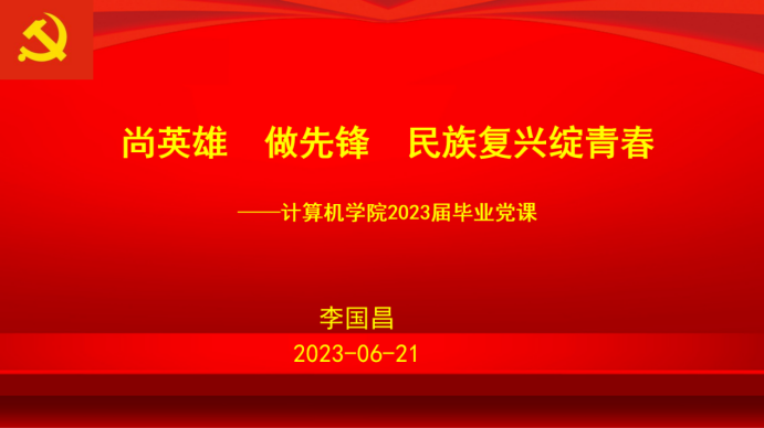为进一步提高毕业生党员党性修养,充分发挥毕业生党员的先锋模范作用,6月21日,计算机学院在计科楼126报告厅举行2023届毕业生党员离校教育大会。学院党委书记李国昌、组织人事秘书罗俊、研究生辅导员李欢欢、2019级本科生辅导员闫维蓉、2021级本科生辅导员谭文博出席会议。2023届本研毕业生党员参加会议,学院党建办公室副主任金子潇主持会议。
