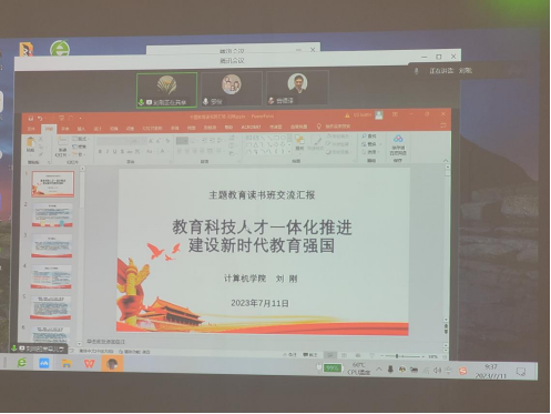 计算机学院党委认真落实学习贯彻习近平新时代中国特色社会主义思想主题教育的部署,坚持主题教育暑期“不放假”“不轮休”,于7月11日,在石材厂A204举办学习贯彻习近平新时代中国特色社会主义思想主题教育专题读书班。全体院领导以线上线下相结合方式参加,学院党委书记李国昌主持读书班。会上,大家按照学院学习贯彻习近平新时代中国特色社会主义思想主题教育专题读书班的要求,在个人自学的基础上,结合工作实际,集中汇报了自己的学习著作及学习体会。