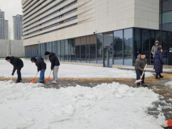 2月23日上午9时半,在学院党委书记李国昌、院长张洪艳的带领下,计算机学院20余名教师、学生志愿者分组分片对崇智楼西门、南门区域进行集中扫雪除冰,掀起了一场“战冰雪、保平安、暖人心”的热潮。