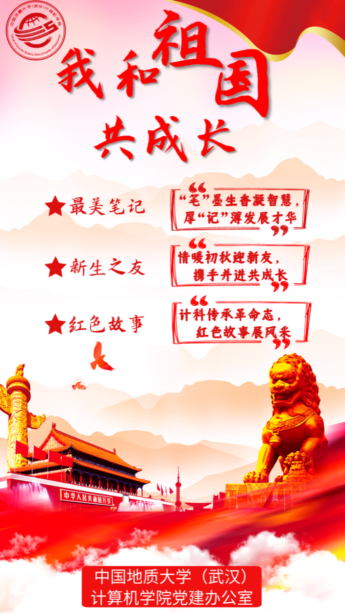 为深入学习贯彻落实党的二十大、二十届三中全会精神和全国教育大会精神,中国地质大学(武汉)计算机学院秉持启智育德的教育理念,打造“三红三育”育人阵地,围绕红色文化的传承和创新,将“红色领航”、“红色研学”、“红色实践”三大板块与育德、育情、育志的育人目标紧密结合,构建出红色文化浸润、历史传承引导和多维教育实践的党建育人新范式,策划实施“我和祖国共成长”系列活动,让青年学生在学思践悟中厚植爱国主义情怀、树立报国理想、坚定奋斗信念。
