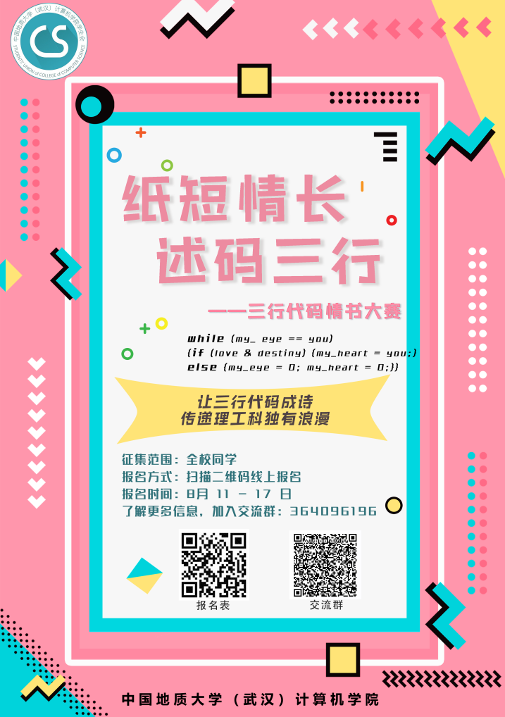 ·参赛者使用三行代码表达自己对某个人、某件事的感情,以中文注释具体含义,编程语言不限,按照指定方式提交作品。
