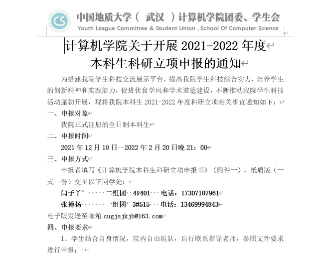 计算机学院学生会在学校2021年度五四评优活动中荣获“标兵学生会”,这也是连续第4年获评学校“标兵学生会”。计算机学院学生会成立于1985年10月,第一任主席为1985级校友刘义青。现任学生会主席团成员为方知雨、管仁祥、霍奥林。学生会下设五个部门:办公室、科技部、学风部、文体部和权益服务部。自成立伊始,学生会始终坚持在院党委领导、院分团委指导下开展工作,秉承“全心全意服务同学”的宗旨,牢记“Care you,serve you”的服务理念,历经三十七年建设发展,不断开拓创新,打造了一系列计科特色品牌活动:华中地区程序设计邀请赛、“计科E课堂”“Hello World—带你看世界”系列讲座、“CUGer看地大”校园摄影作品征集大赛、“阳光计科人,运动成长季”计科运动月、“计科标杆”评选活动等。近年来,学生会在思想引领、学风建设、创新创业、权益服务、团学改革等方面取得了长足进步,引领计科青年奋发作为、不懈奋斗,在青春的赛道上奋力奔跑。