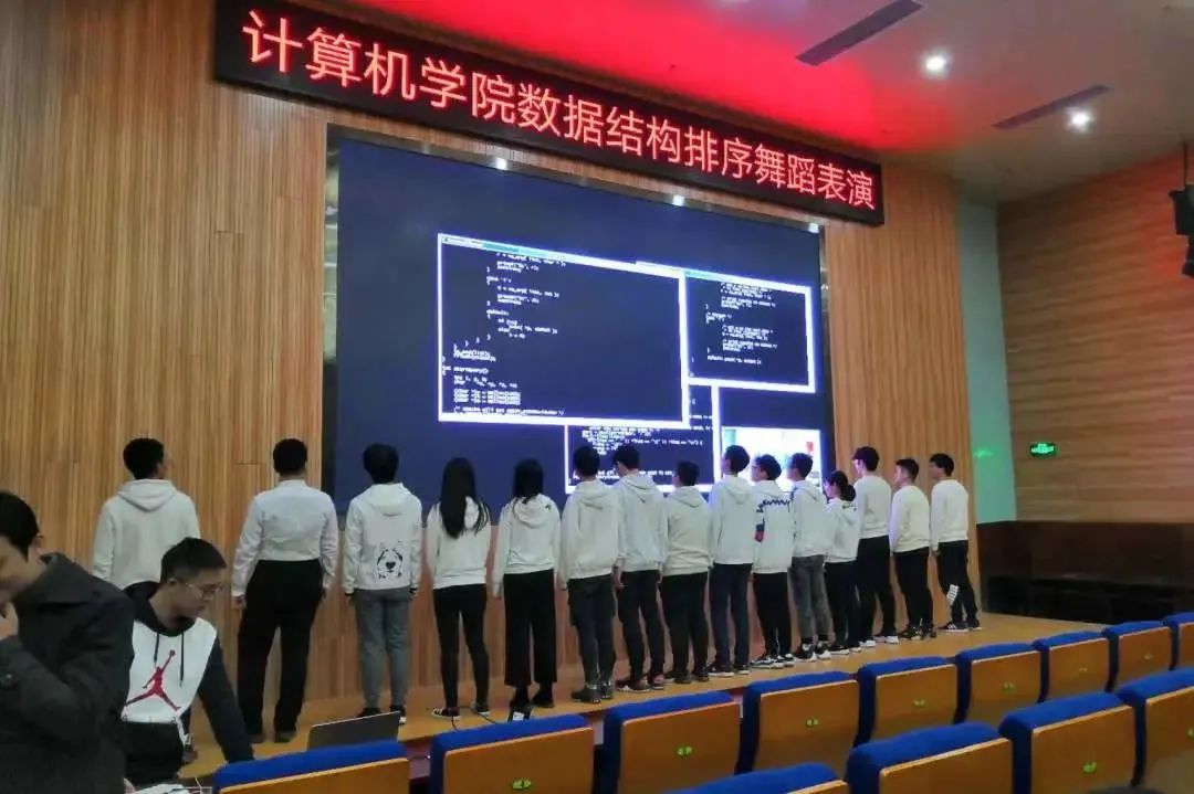 除了在办公室谈心谈话,宿舍、课堂、操场都能经常见到他与学生在一起的身影。每周“三必访一请教”是他对自己的基本工作要求,访早操、访课堂、访宿舍,并常常与任课老师交流沟通,了解同学们的学习情况,及时发现问题并予以解决。如,当他发现同学们学习“数据结构”这门课比较吃力时,他便协助任课老师组织同学们编排算法排序舞蹈,让同学们在舞蹈中学习代码的奥秘。