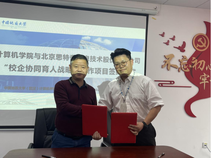 (通讯员:柴文岳)5月12日,我院与北京思特奇信息技术股份有限公司成功举办“校企协同育人战略”合作项目签约仪式。北京思特奇信息技术股份有限公司湖北分支总经理张伟、产品顾问王大鹏、华中区人力主管崔娇娇、湖北人事行政专员孙丽培,计算机学院党委书记李国昌、党委副书记傅苑、副院长胡成玉、副院长陈云亮、团委书记李欢欢、2019级辅导员闫维蓉出席签约仪式,李欢欢担任主持。