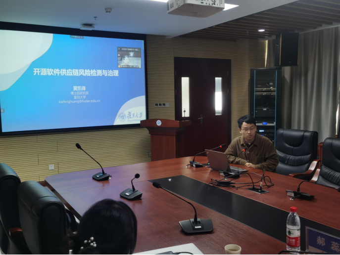 主旨报告后,复旦大学软件工程实验室黄凯锋博士后,武汉大学计算机学院讲师甘庭,南京大学智能软件工程实验室郝蕊博士分别围绕开源软件供应链风险检测与治理、非线性Craig插值生成及其在程序不变式中应用、软件测试缺陷的理解与摘要进行演讲,探讨相关问题学术进展和成果。