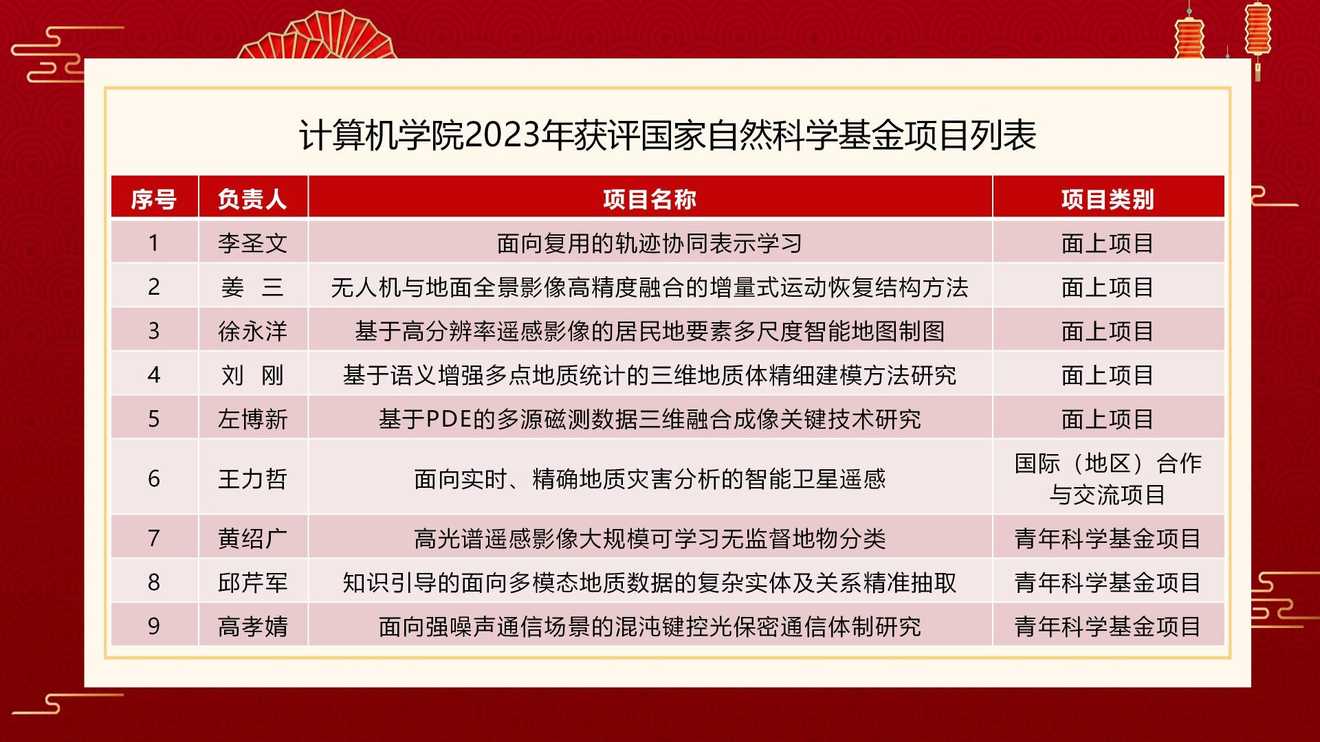 8月24日,国家自然科学基金委员会公布了2023年度自然科学基金集中接收申请项目评审结果,计算机学院共获得9项资助,其中面上项目资助5项、国际合作项目1项、青年项目3项,获批直接经费348万元。
